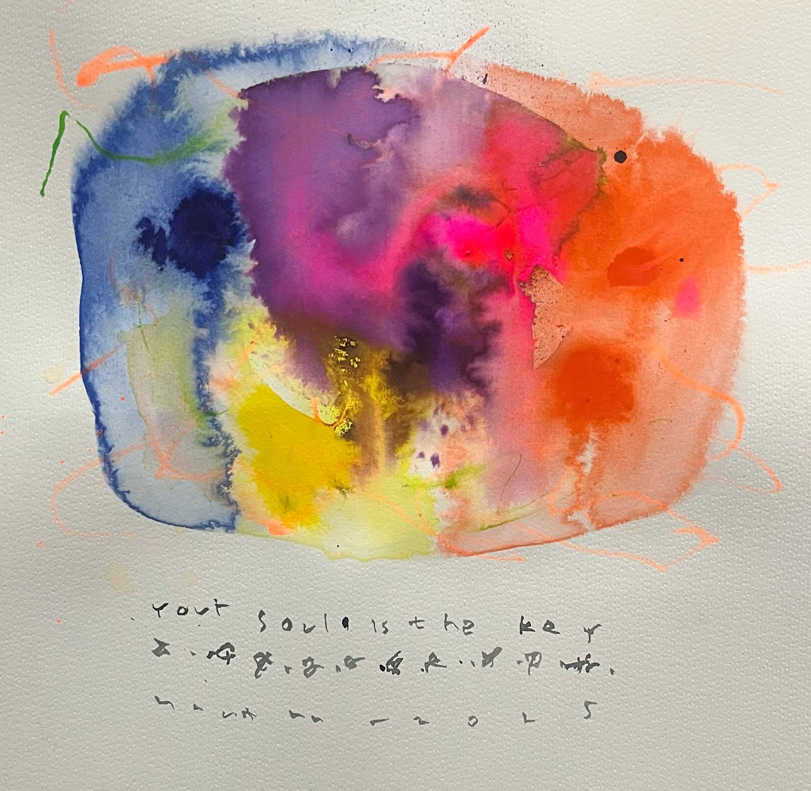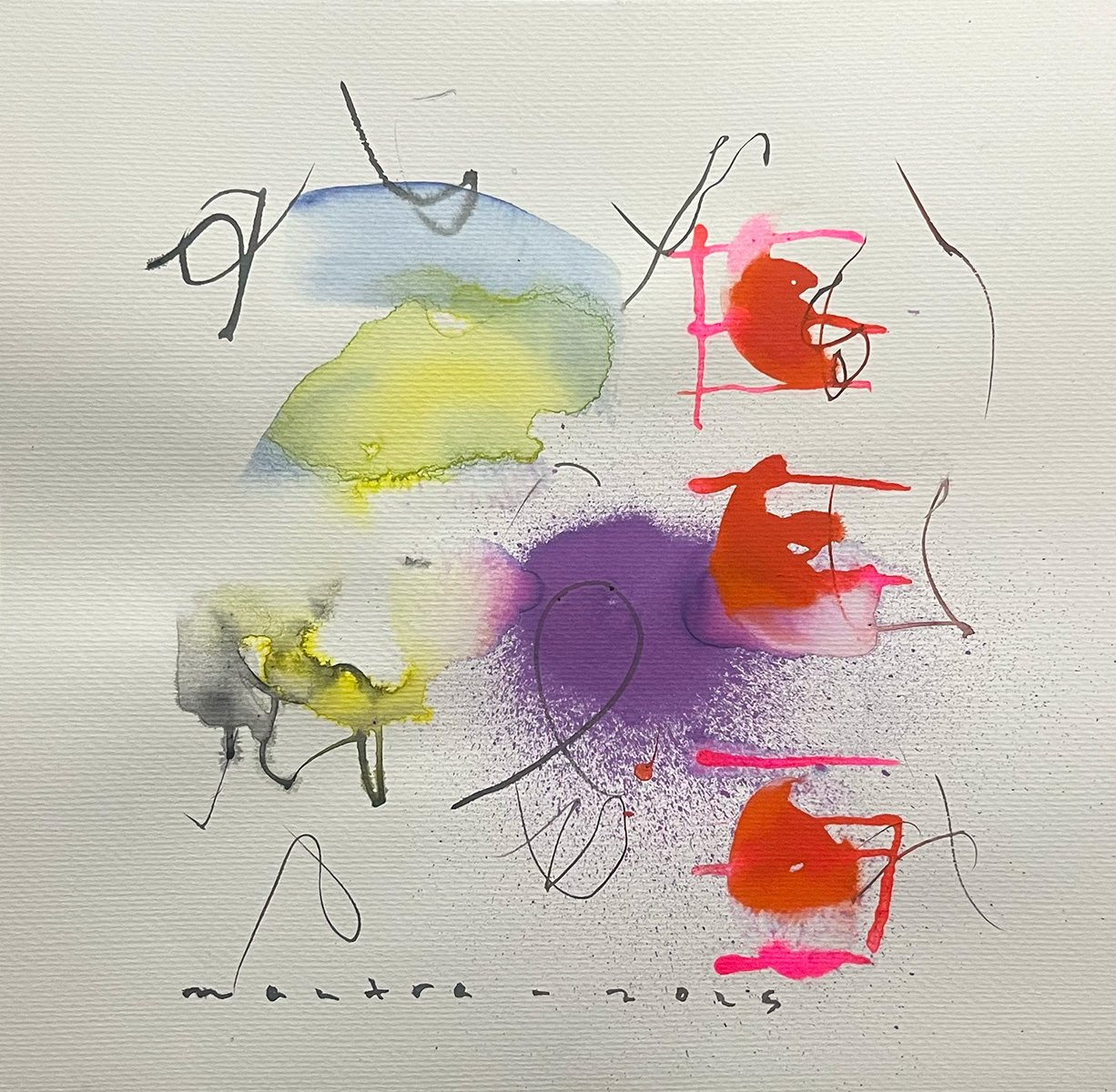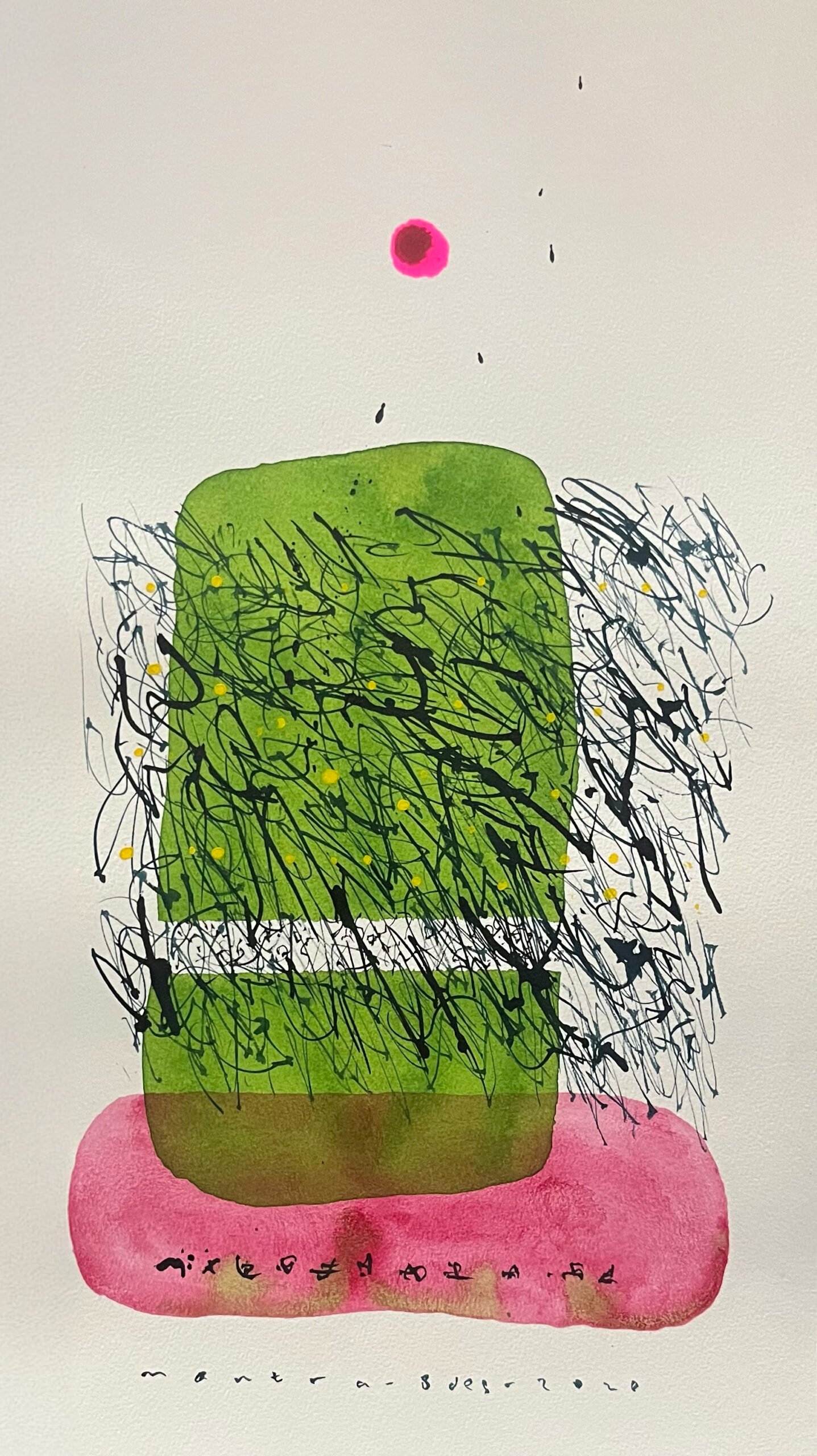 Mantra also created his own typographic system, “Organic Mind typography.” These letters are not linguistic tools but visual forms—like veins, roots, or flowing oxygen: liquid and organic. Typography becomes part of the painting’s body and breath—an act of catharsis. In another view, only Mantra can “read” them. We cannot.